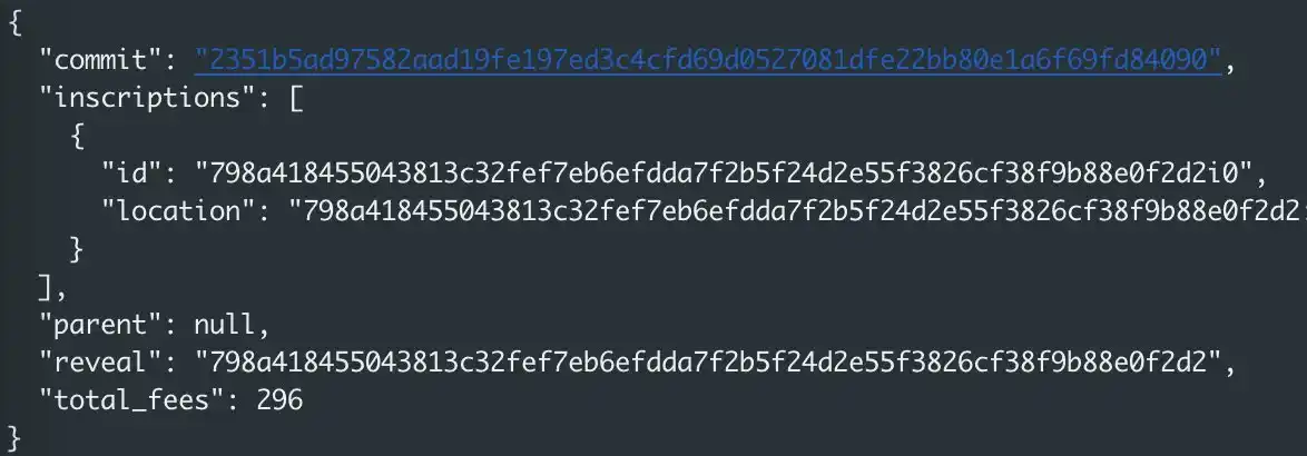 11. 首先,在提交交易中,创建了一个承诺包含铭文内容的脚本的 Taproot 输出。然后,在揭示交易中,消费了由提交交易创建的输出,从而在链上揭示了铭文内容。实战中可以看到一个 commit 的 hash 一个 reveal 的 hash。