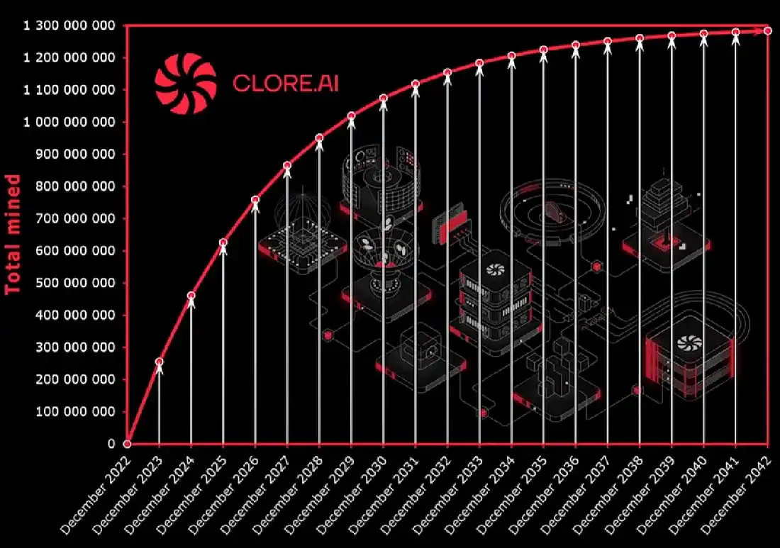 CLORE 属于 POW 代币,采用 kawpow 算法,与渡鸦币相同,抗 ASIC 挖矿。代币没有预挖和 ICO,每个区块的 50% 分配给矿工,40% 分配给出租者,10% 分配给团队。