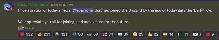 由于此次的大额融资消息,以及在 Wormhole 的 Discord 频道里,官方工作人员称将向 Discord 服务器的所有成员提供独家「早期」角色。许多人猜测,Wormhole 是不是又要发币了?