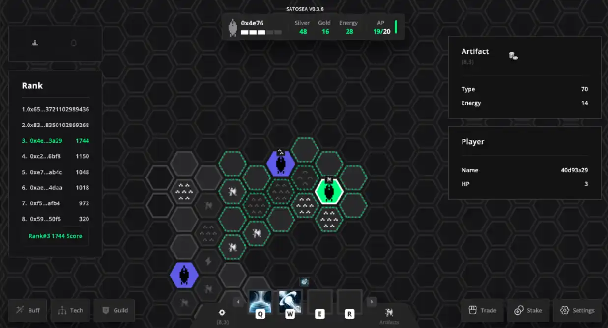 比如:Project Sophon 写了 Dark Forest 本地库让用户可以自己在链下或链上开启一轮游戏;乌克兰游戏组织 Orden_GG 构建了神器的交易市场并且加了流动性池;华语 DAO MarrowDAO|GuildW @marrowdao 开发了神器交易市场、GPU 开图工具在内的不少插件等,其 UGC 的生态非常的有趣。