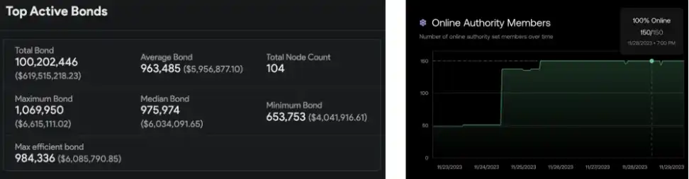 2.去中心化程度:Thorchain 目前共有 104 个节点维护链上金库的安全,Chainflip 的去中心化验证网络则由 150 个节点组成。从节点数量上来看,Chainflip 的去中心化程度会相对更高,但二者间并无明显差距。