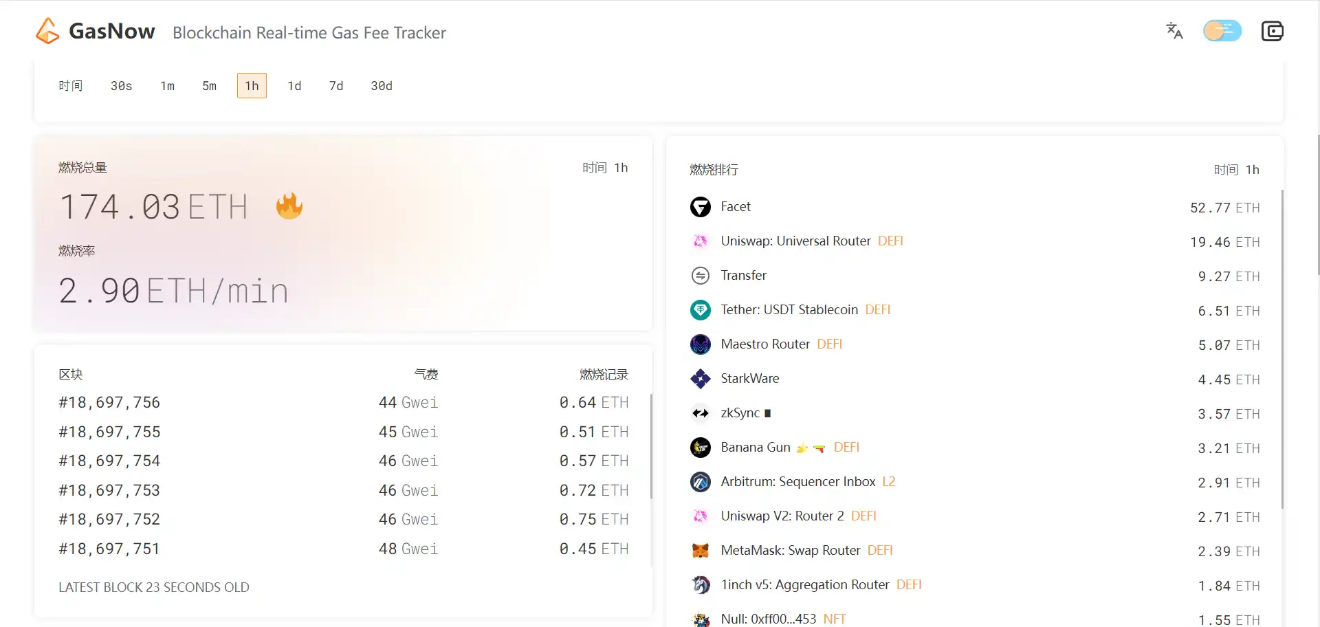 Facetswap 于 11 月 30 日成功上线,当天它所燃烧的 ETH 数量超过了 Uniswap,一度位居全网第一。