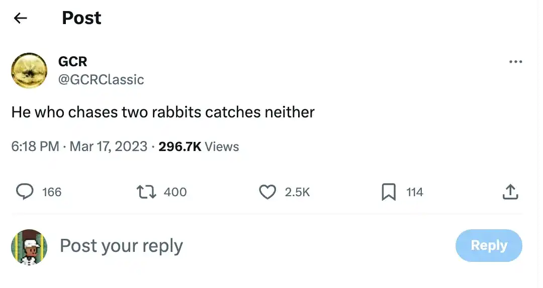 「追逐两只兔子的人将一无所获。」全球竞争评论 ( GCR ) 曾在社交媒体平台上发表了如是观点。
