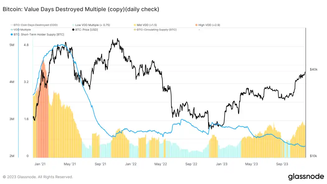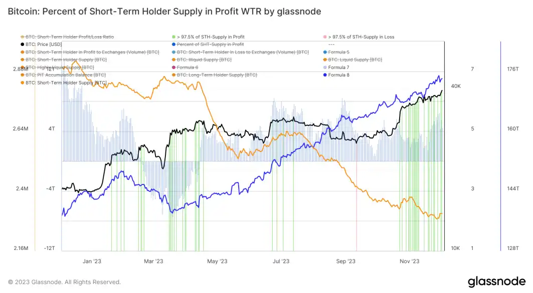 当前短期持有者成本来到 32K,当前链上筹码盈利百分比已来到 93%,处于偏高水平。