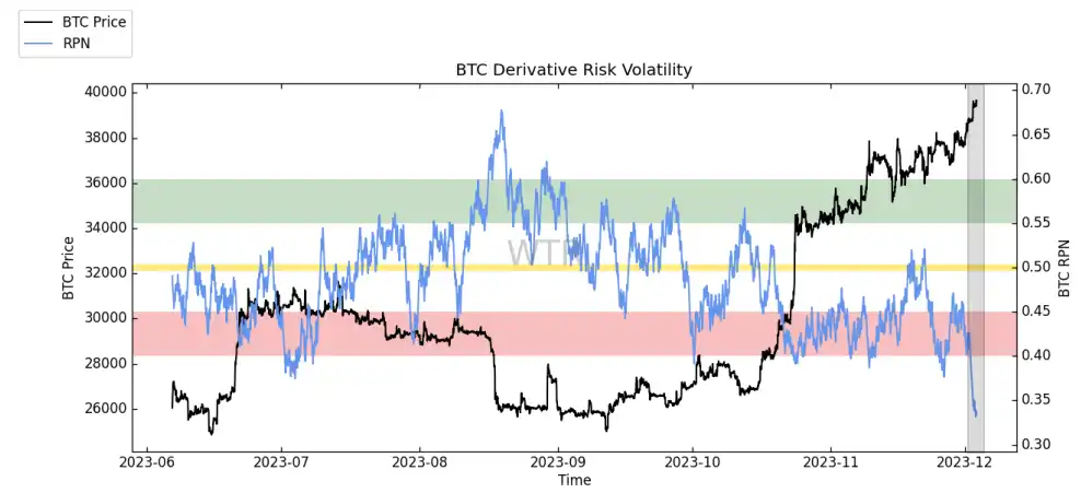 上周提到风险系数长时间在危险区域可能预示着在酝酿大的波动,本周风险系数持续下探,价格也已来到 40K 往上。结合轧空量和风险系数来看,仍有轧空空间,但空间有限。