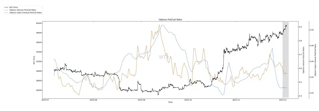 期权成交量小幅下降,看跌期权比例处于较低位置水平。