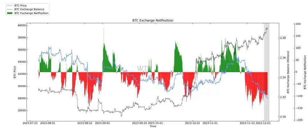 4. 交易所净头寸整体呈现大量流出,抛压较低。
