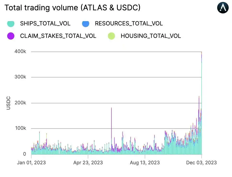 然而,这款游戏已经开发了几年了(自上一个周期以来),因此与其他游戏相比进展较慢。但不管怎样,Star Atlas 的游戏内物品市场最近的交易量大幅增加,高达 40 万美元。