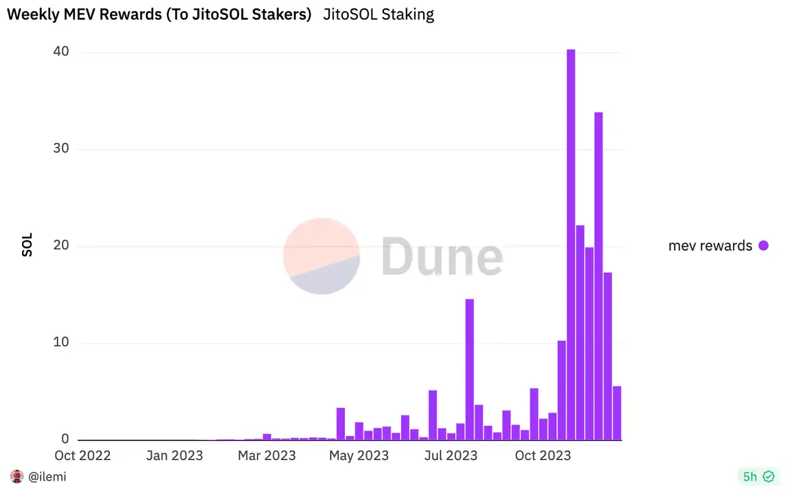 随着 Jito-Solana 验证器客户端被不断地采用,基于 Jito-Solana 捕获的 MEV 奖励也越来越多,这也为 Jito 推出具有 MEV 奖励的 LSD 模块打下了坚实的基础。