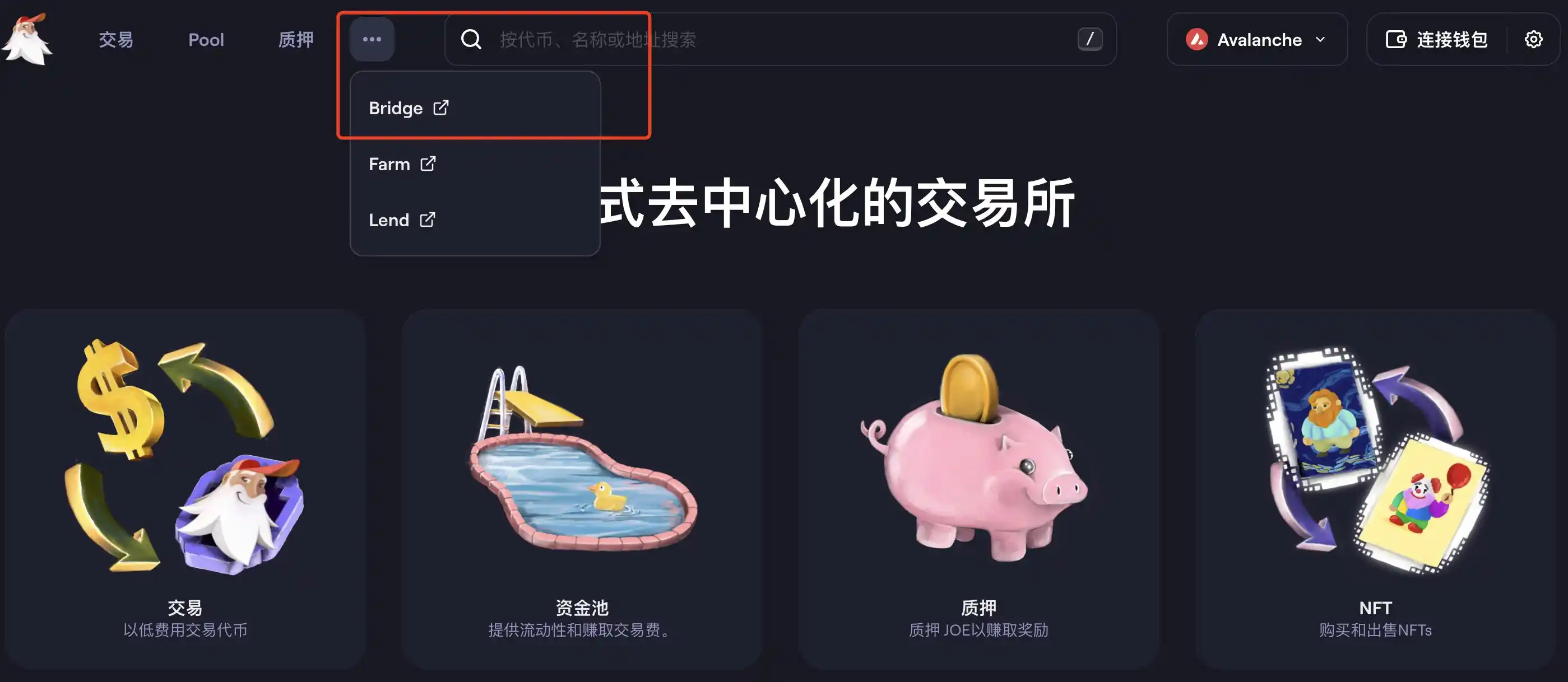 目前 $JOE 已经在 Avalanche、arbitrum 及 BNB Chain 上部署,用户可以通过官网首页的 Bridge 按钮将自己的 $JOE 跨到不同的链上,而为 $JOE 提供跨链解决方案的就是 Layerzero。