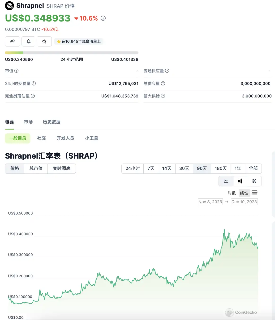 最近这个游戏火起来,主要还是因为其代币 $SHRAP 一直在上涨趋势中,目前 FDV 已超过 1 billion。
