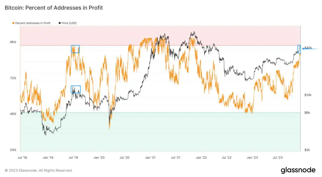 1. 全网盈利百分比高到 90%,在 2019 年的大顶当中,全网盈利百分比在 95% 到 97%;