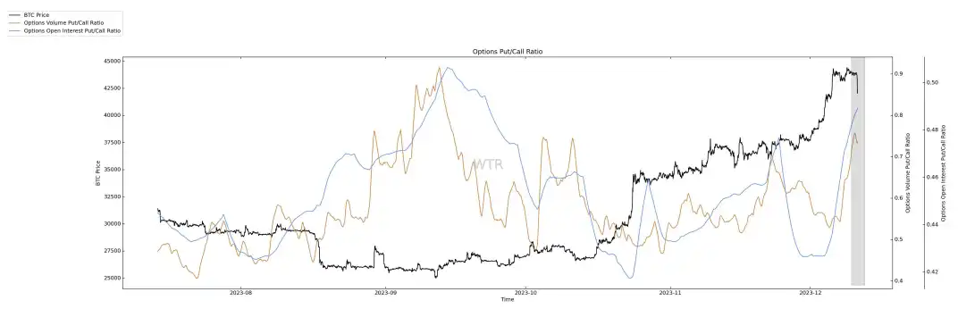 期权成交量以及看跌期权比例本周均有大量增加,看跌保护预期较高。