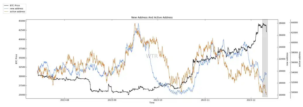 新增和活跃地址均回落至低位水平,当前链上活跃度⼀般。