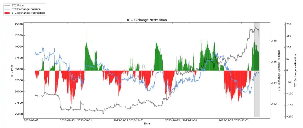从交易所趋势净头寸额情况来看,目前有少量的流入迹象,可能当前的价值仍然在徘徊和博弈过程中。