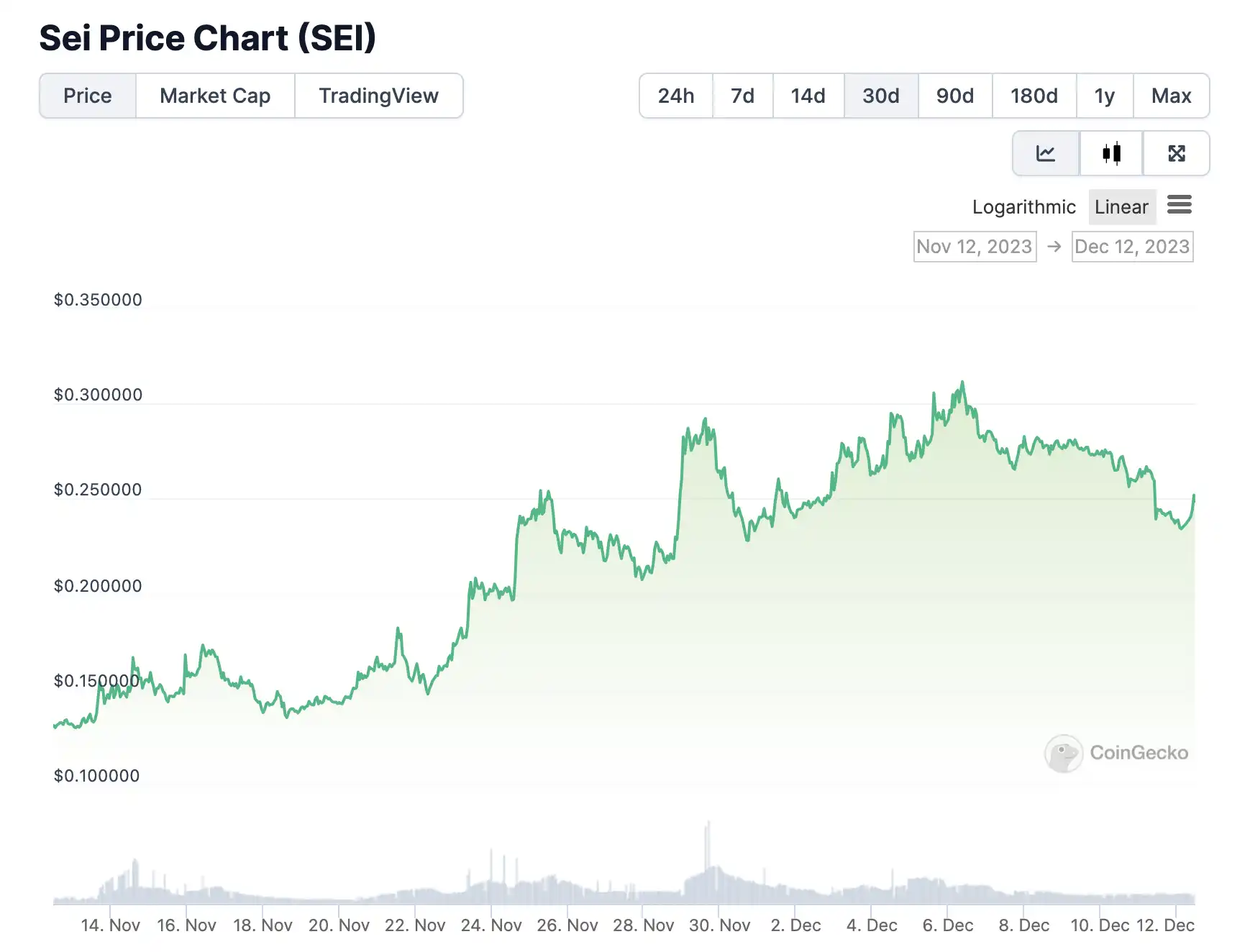 其原生代币是 SEI 价格为 0.24 美元,30 日涨幅达 91.4%。