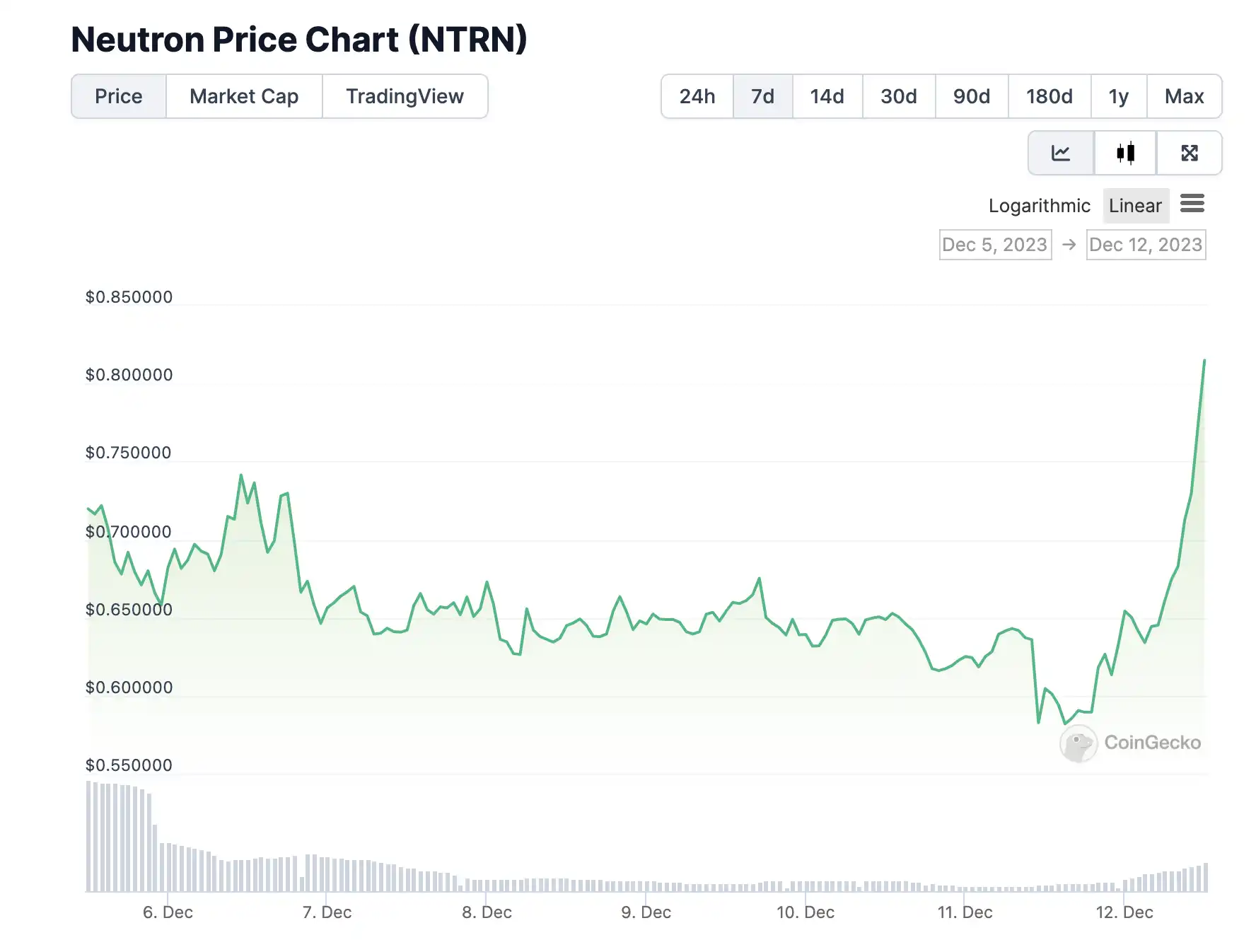 Neutron 原生代币为 NTRN,11 月 14 日,Binance 上线了 NTRN 1-50 倍 U 本位永续合约。截至发稿前,NTRN 价格为 0.81 美元,24 小时涨幅为 38.3%。