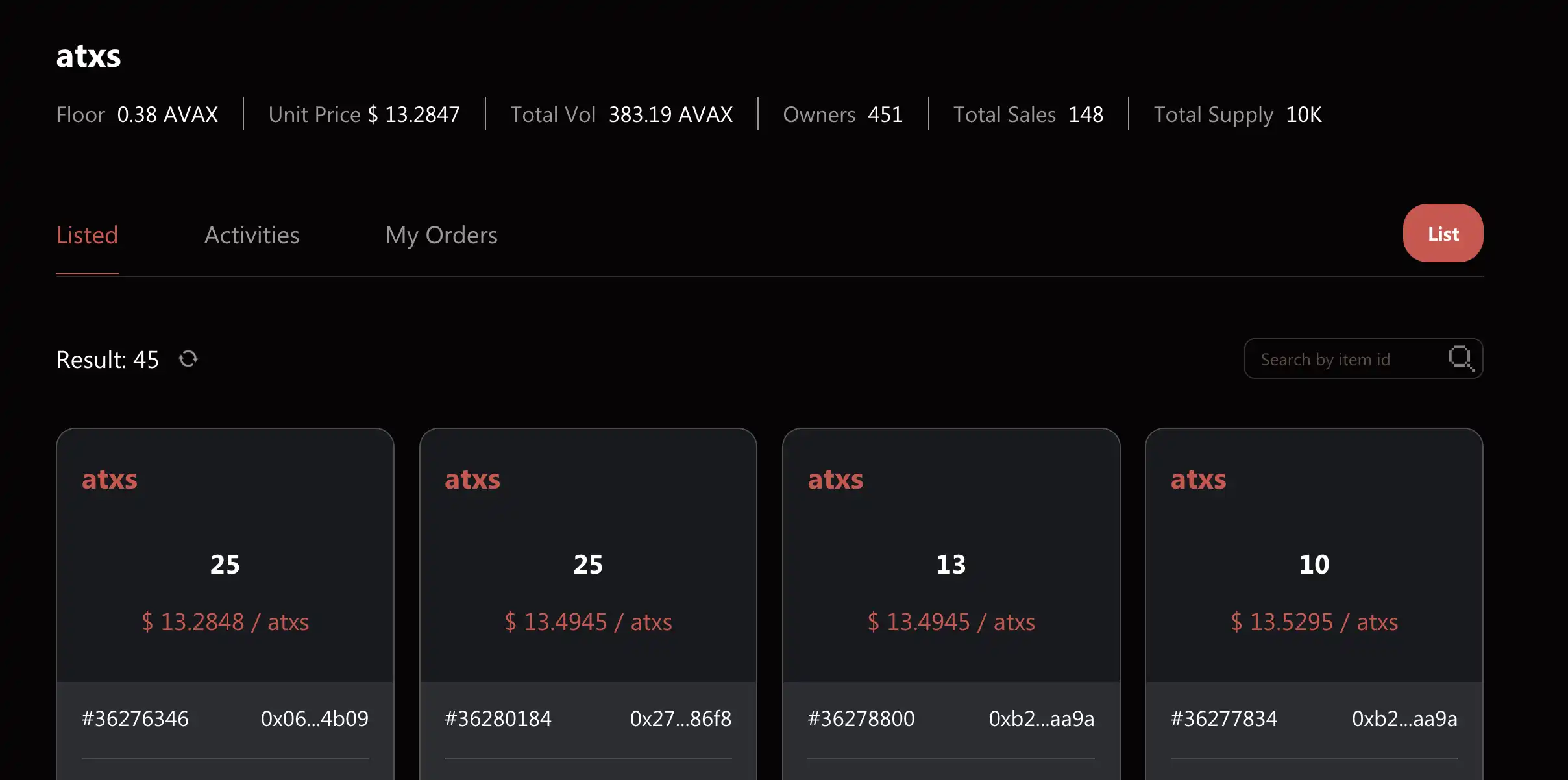 ATXS 是 Avascriptions 交易市场排名第三的铭文项目,于 12 月 13 日凌晨完成部署,mint 进度已达 100%,但目前挂单人数较少,持有人仅有 451 位。