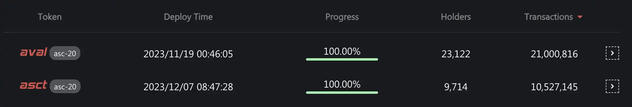 AVAL 到 ASCT,Avalanche 铭文龙头易主