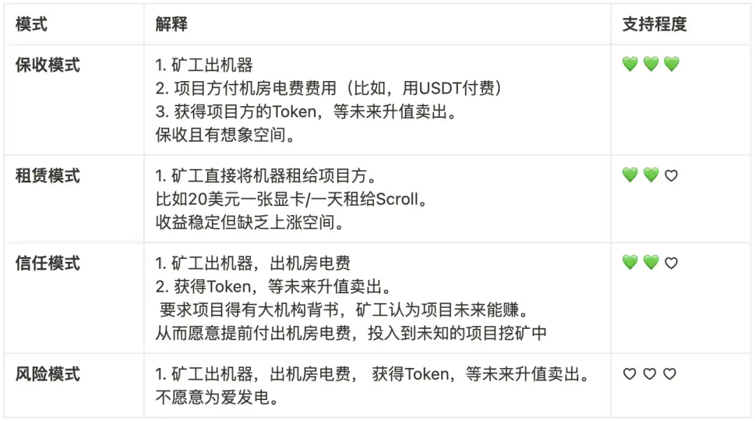新项目对矿工来说收益是未知的,却实打实要投入机房和电费。因此,对合作模式有要求。
