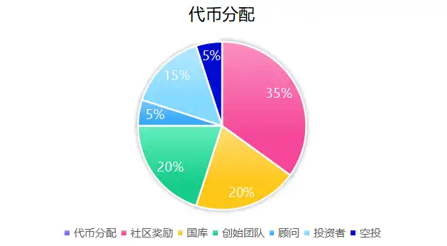 代币分配:代币总供应量暂未公布。社区奖励占比 35%、国库占比 20%、创始人和团队占比 20% 、顾问占比 5%、 投资者占比 15%、空投占比 5%。