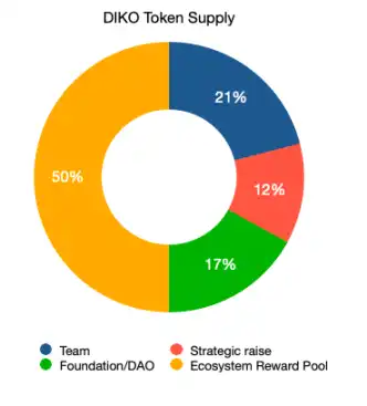 治理代币 DIKO:DIKO 代币用于协议的治理,持有者可以参与决策过程,并通过为流动性池子添加资产来获得 DIKO。