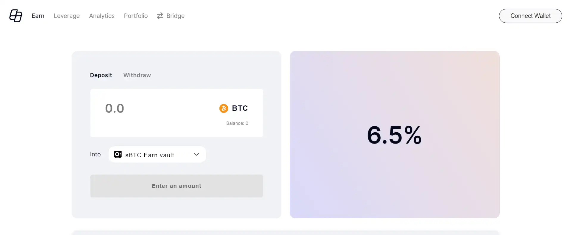 赚取收益:用户可以通过存入比特币和稳定币来赚取实际收益。此外,该平台允许单边提供流动性。