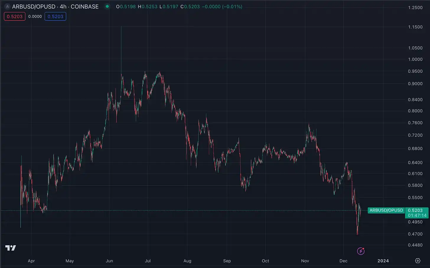 随着 $ETH 保持平稳,大多数与 ETH 相关的币也表现缓慢,除了 $OP,它是本周最强劲的币之一,上涨了 +30%。特别值得注意的是,$OP 大幅超过了 $ARB。老实说,我没有一个明确的理由能够说明为什么 $OP 表现出色。