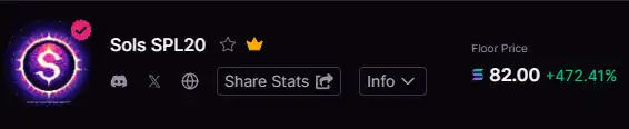 Solana 链上铭文代币 Sols 地板价上涨至 82 SOL,24 小时涨幅扩大至 472.41%