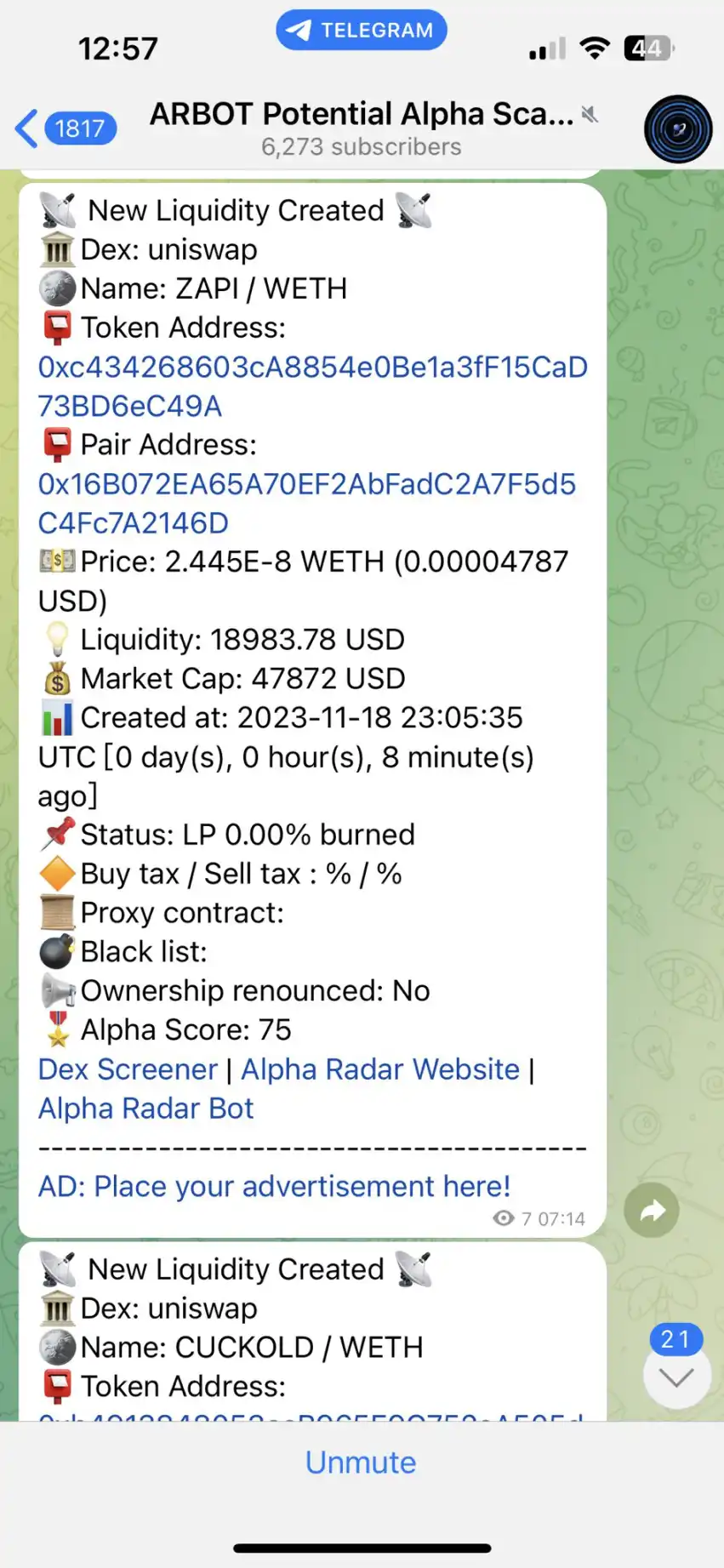 其次,利用机器人监控链上行为。常见的 bot 有 pepeboost、alpha radar bot、nerdbot 等,都能推送实时的交易数据趋势。这些 bot 界面简洁,会基于合约安全,流动性池、聪明钱地址数等情况分析综合评分。在这些 bot 推送的高分项目中再做挑选,会取得事半功倍效果。