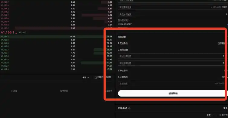 检查设置条件无误后,即可点击「创建策略」。当然,也可以选择 OKX 自带的策略和在策略广场上选择跟单马丁格尔大神。但值得注意的是,OKX 合约马丁格尔创建后投入的资金会从交易账户中隔离出去,独立在合约马丁格尔策略中使用。所以用户需要关注资金被转出后给交易账户中整体仓位带来的风险。此外,市场价格波动较大,如价格持续向反方向单边运行时,则此时持有的仓位可能会承受浮动亏损,甚至有强平风险。所以建议在创建策略时针对行情判断合理位置设置止损价格,以便及时止损。