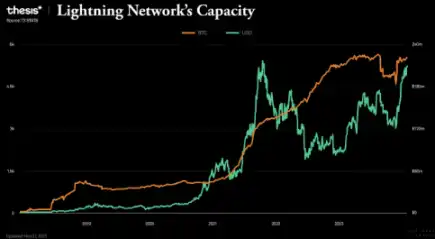 展望未来,尽管闪电网络取得进展,但仍面临成长中的烦恼,与外在成功不符。网络拥堵导致的高费用事件暴露了持续的可扩展性限制。核心开发者离职突显技术风险。约 90% 的交易通过托管钱包完成,反映了非托管使用的用户体验障碍。虽然闪电承诺巨大潜力,但尚不是成熟产品。