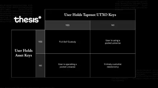 如如上所述,Taproot 资产的保管和所有权与比特币上的其他同质化 Token 有所不同。