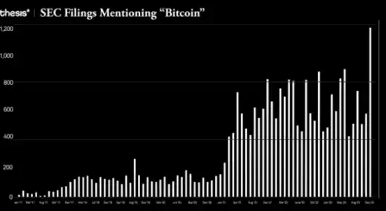 目前可用的传统股票市场工具(如 iShares 比特币期货 ETF,BITO)已经抢先满足了对比特币这一资产的需求,并在 11 月底达到了历史最高的资产管理规模。