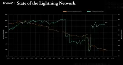2023 年 10 月,闪电网络的通道数量和总价值出现萎缩,可能是因为整合事件或对外部市场因素的回应。不过随后这两项指标都有所恢复,展现了网络的弹性。尽管波动,但总体上通道价值有所增长,显示了网络容量的扩大。