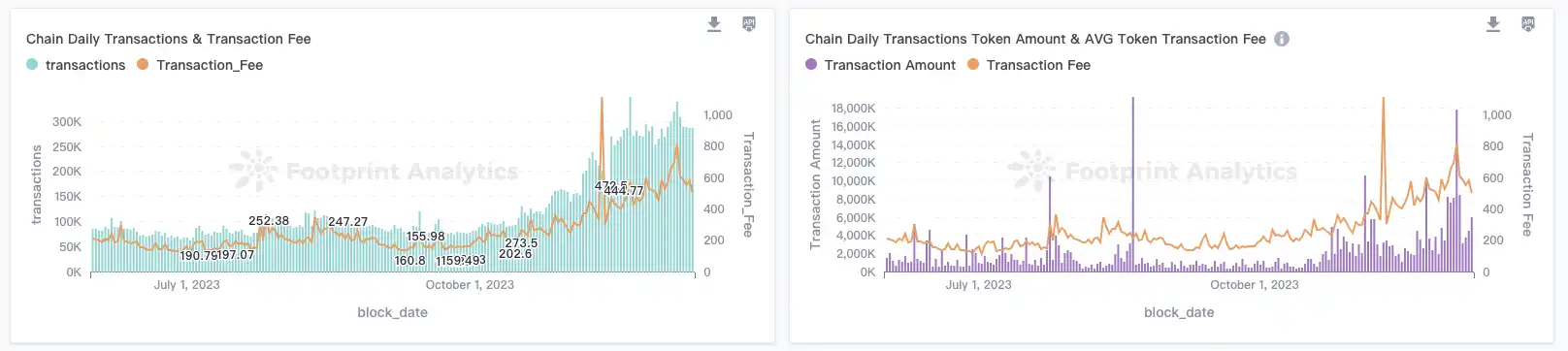 随着第一批游戏工作室的入驻,Ronin 从最初的「Axie Infinity 链」进入了一个更成熟的新阶段:面向更广泛链游的基础设施。在这个角色上,Ronin 开始收获它的胜利果实。Footprint 数据显示,Ronin 的日活跃地址数接近 15 万,近两个月增长了 10 倍;链上交易笔数突破 30 万笔,为今年新高。