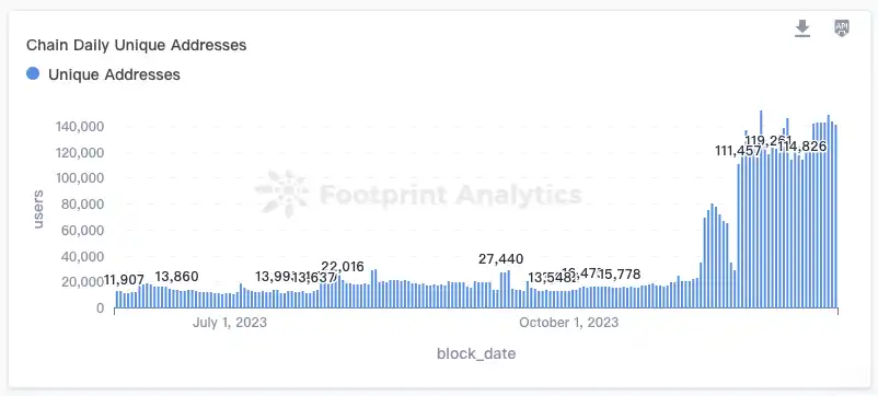 大多数人再次注意到 Ronin,或许是其创始人 Jihoz 在今年 11 月宣布 Ronin 上的链游 Pixels 日活地址突破 10 万。与此同时,Ronin 的交易量在过去 3 个月里增长了四倍,Ronin 链上的日活跃地址从 10 月初不足 2 万,增长为如今的接近 15 万。