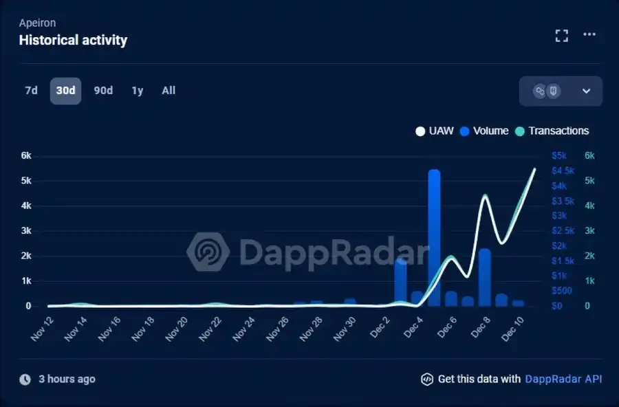 Apeiron 迁移至 Ronin 的公告发出后一周,其 UAW 就有了明显的起色。