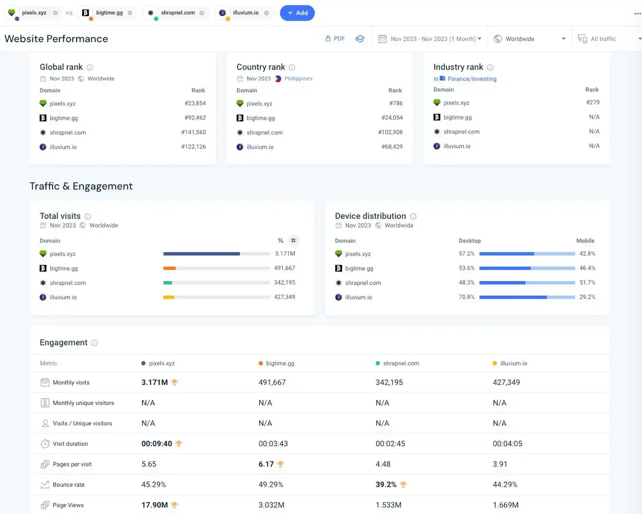 据数据显示,11 月,Pixels 在流量增长方面是链游中表现最好的一款,当月访问量超 300 万次,而同期的热门链游如 Big Time、shrapnel 等访问量不超过 50 万。在 Pixels 的玩家中,来自印尼和菲律宾的玩家共有 51%,东南亚地区正是 Ronin 及 Axie Infinity 的「大本营」。