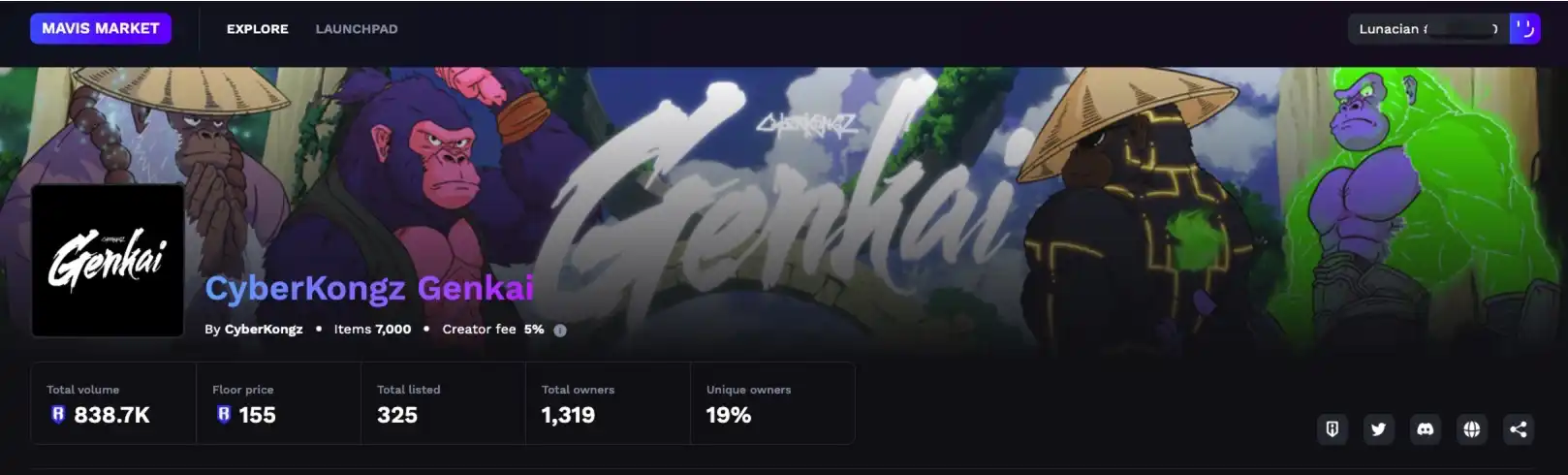 此外,今年 5 月,Ronin 推出了第一个 NFT 市场 Mavis Market,YGG 创始人 OWL 所开发的 NFT 产品 cyberkongz 的 Genkai 系列成为了 Mavis Market 上的第一个铸币厂,3,000 个售价为 0.25ETH 的 Cyber Kongz Genkai NFT 在不到一个小时的时间内售罄,铸币期间,Ronin 在三分钟内处理了 1,500 笔成功交易,每日活跃地址在三天内几乎翻了一倍。