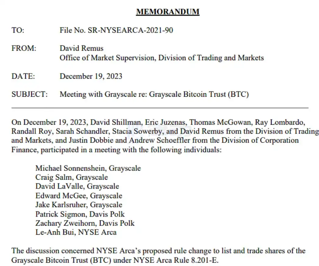 灰度与 SEC 再次会面讨论关于 GBTC 事宜