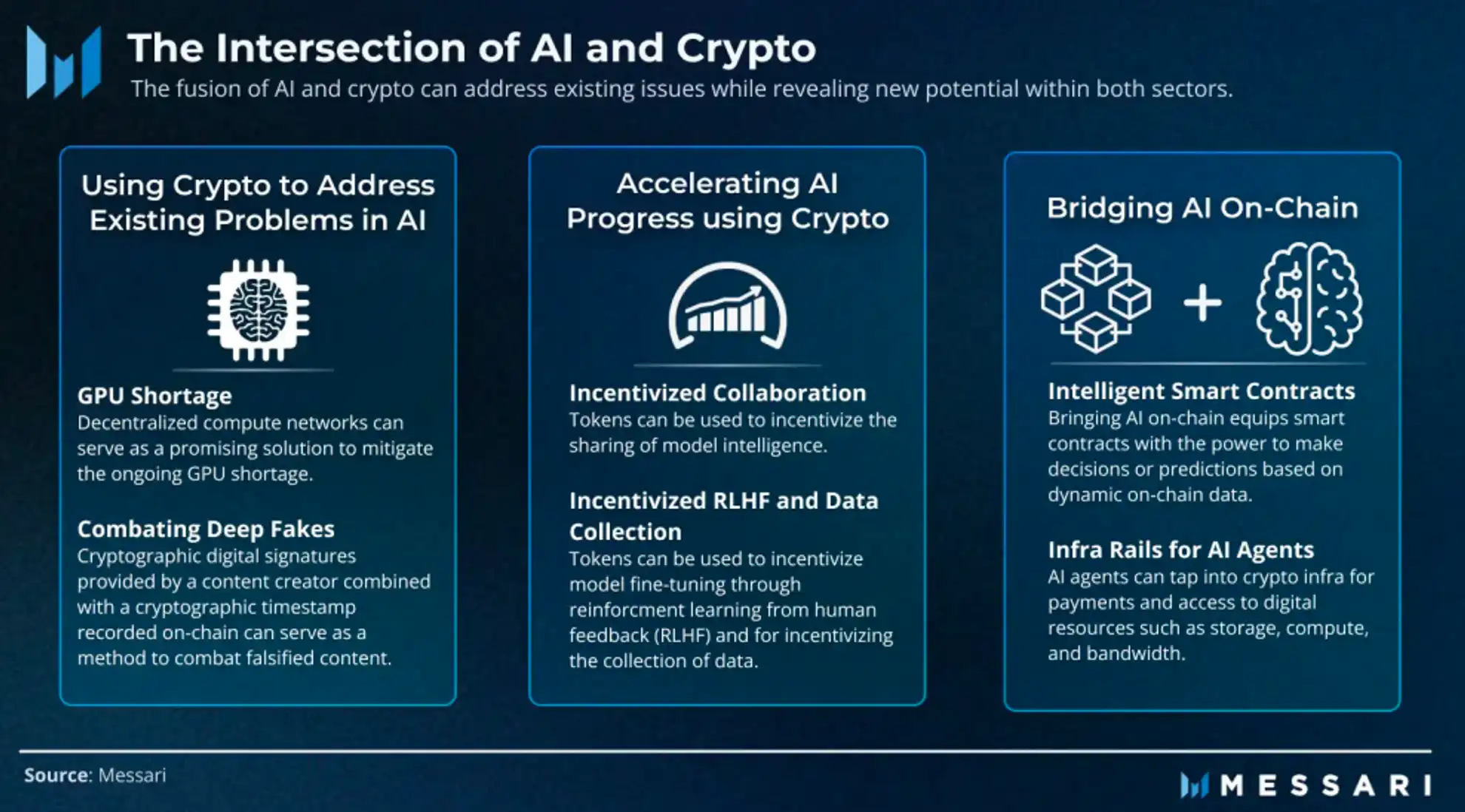 Messari 认为,AI 的进步会增加对加密货币解决方案的需求,以比特币为代表的加密货币也天然地适合作为 AI 的支付货币。