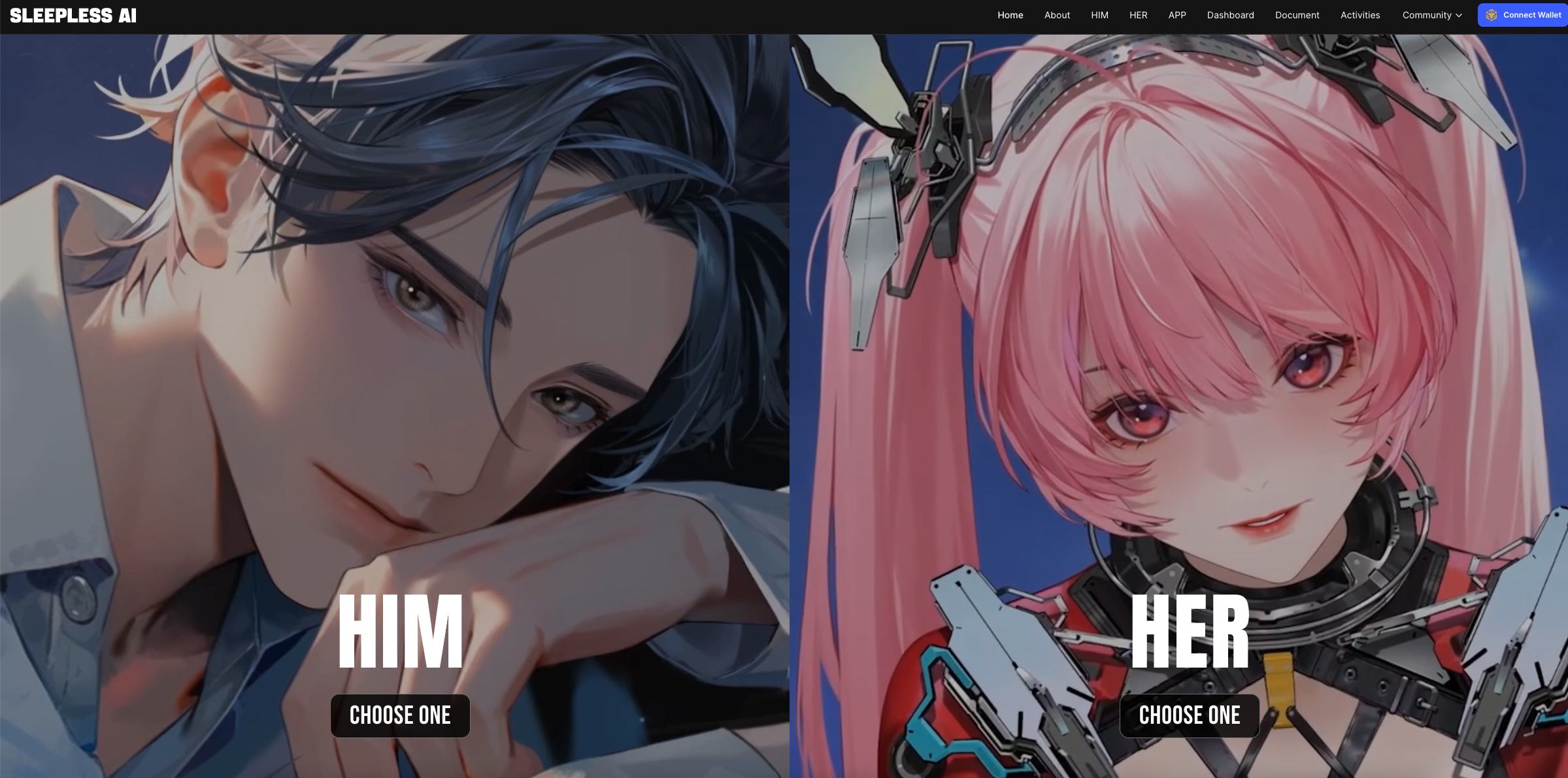 在玩法上,Sleepless AI 的官方文档中介绍了两个 AI 配套游戏:HIM 模式和 HER 模式。