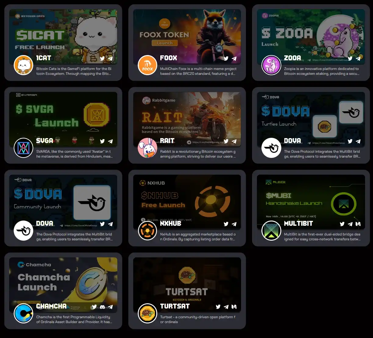 上线至今,TurtSat 平台已经累计发射了多个项目(如下图),这些项目都是早期的 BRC 20 基础设施建设平台,且在项目发射后都有不错表现。