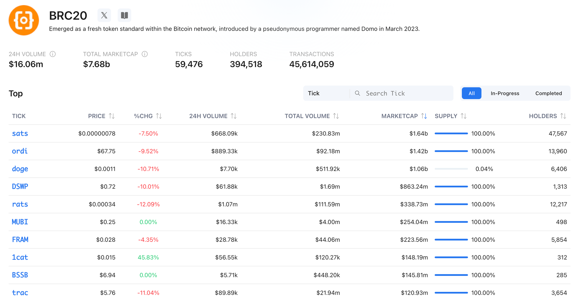 在这种背景下,铭文的出现带来了新的变革。它被一些人视为「散户的天下」,因为所有的筹码完全由散户自行铸造。虽然铭文被一些批评者视为仅具有 meme 币属性,缺乏长期的实际应用场景,但它为散户提供了更多的机会。随着越来越多的铭文项目诞生并结束资产发行阶段,比特币生态系统预计将进入一个新的应用建设阶段。