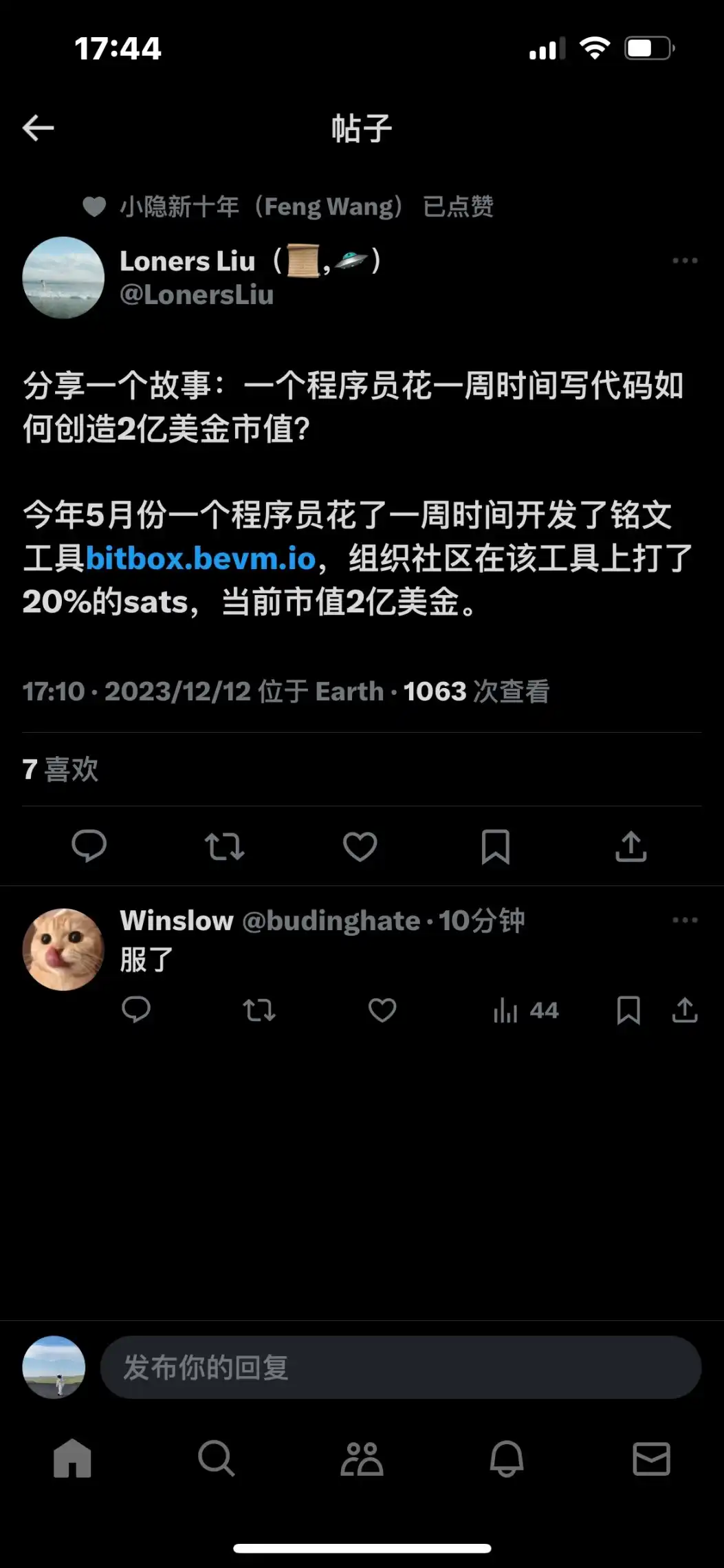 某位程序员花一周时间开发了一个帮助社区打铭文的工具,总共打了 20% 的 SATS,目前对应的 SATS 的市值超过 2 亿美元。