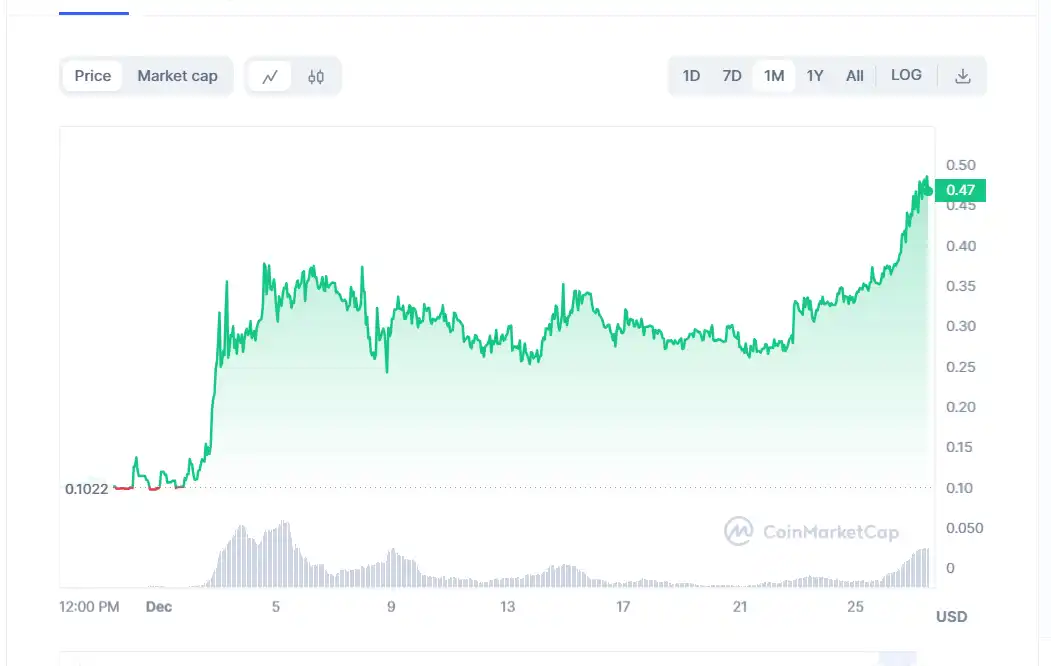 在代币表现上,RBX 表现相当亮眼,7 天涨幅 10%,30 天涨幅 123%,1 年涨幅 133%。近 30 天涨幅明显跑赢大盘,目前 RBX 的市值为 4650 万美元。