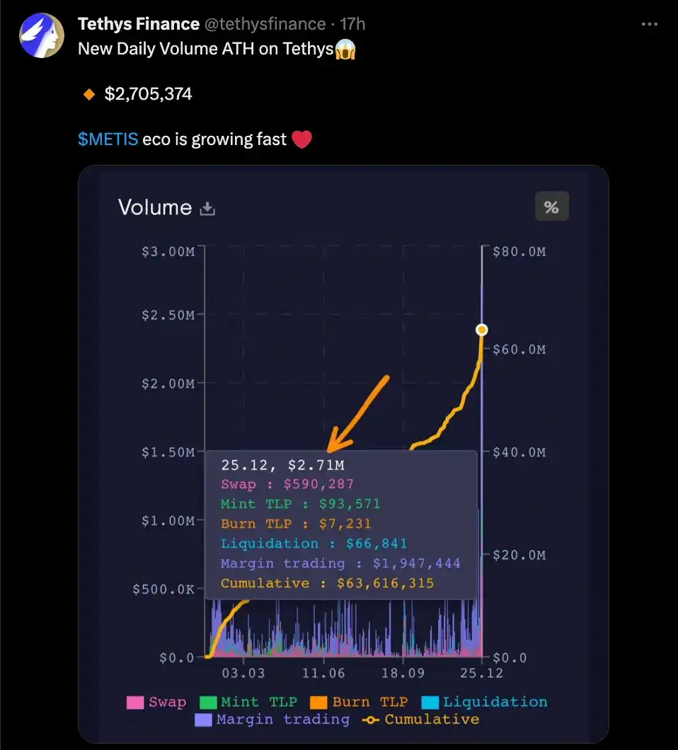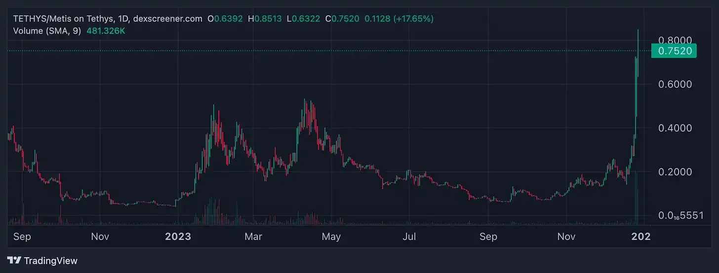 Tethys 有望成为 Metis 的头部的永续协议。这在价格上涨的形式中得到了充分反映;尽管如此,Tethys 仍然是一个值得密切观察的有趣协议。