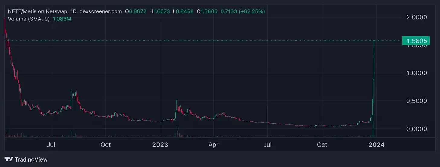 随着 Metis 叙事在 2024 年变得更加强大,Neswap 有望成为其主要受益者之一。虽然这在代币价格上已经得到了广泛反映,但考虑到 Metis 生态系统处于早期阶段,不应排除未来的上涨空间。