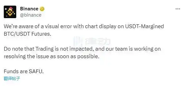 Binance:BTC/USDT 期货合约价格显示错误,交易不受影响
